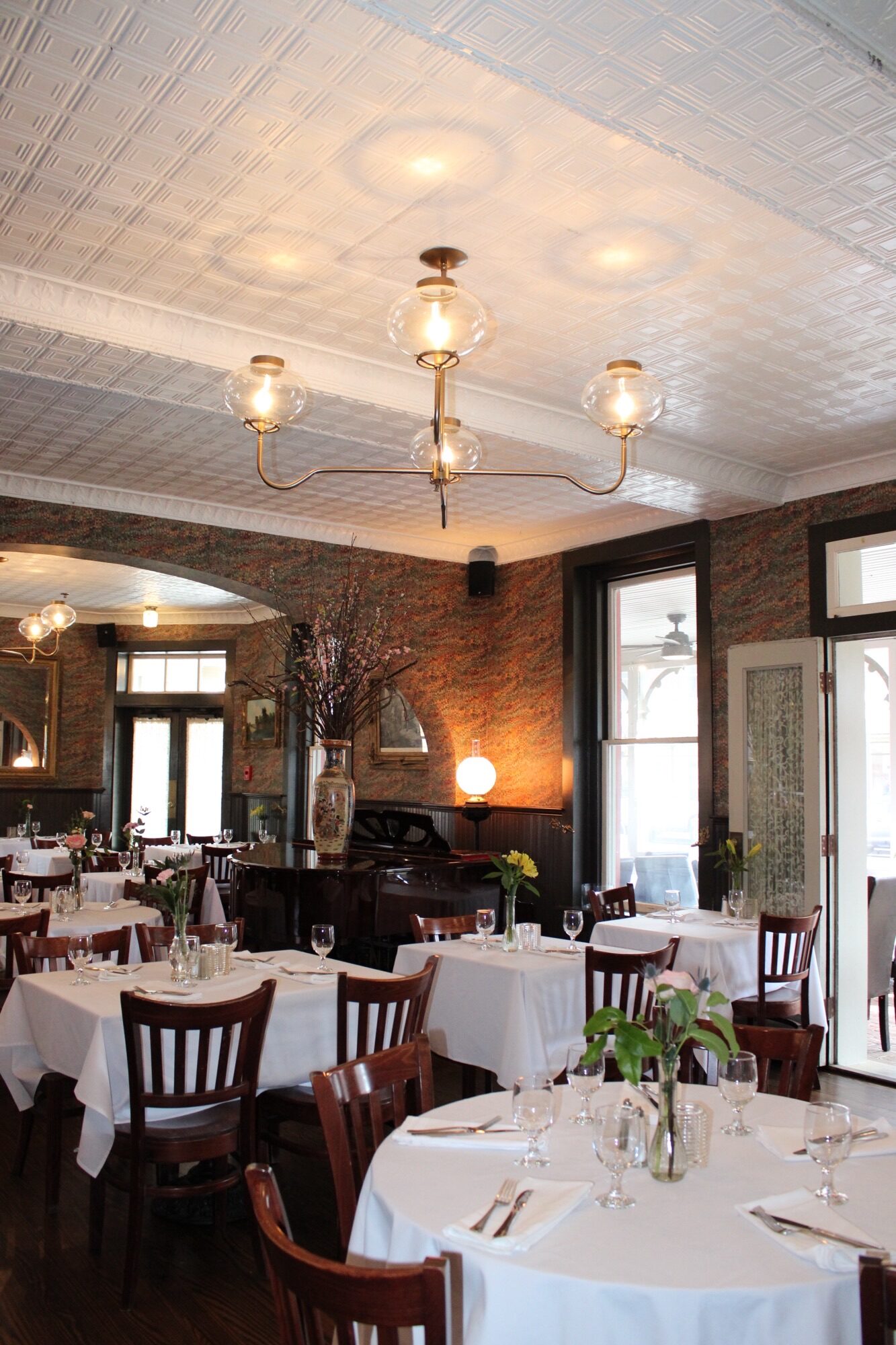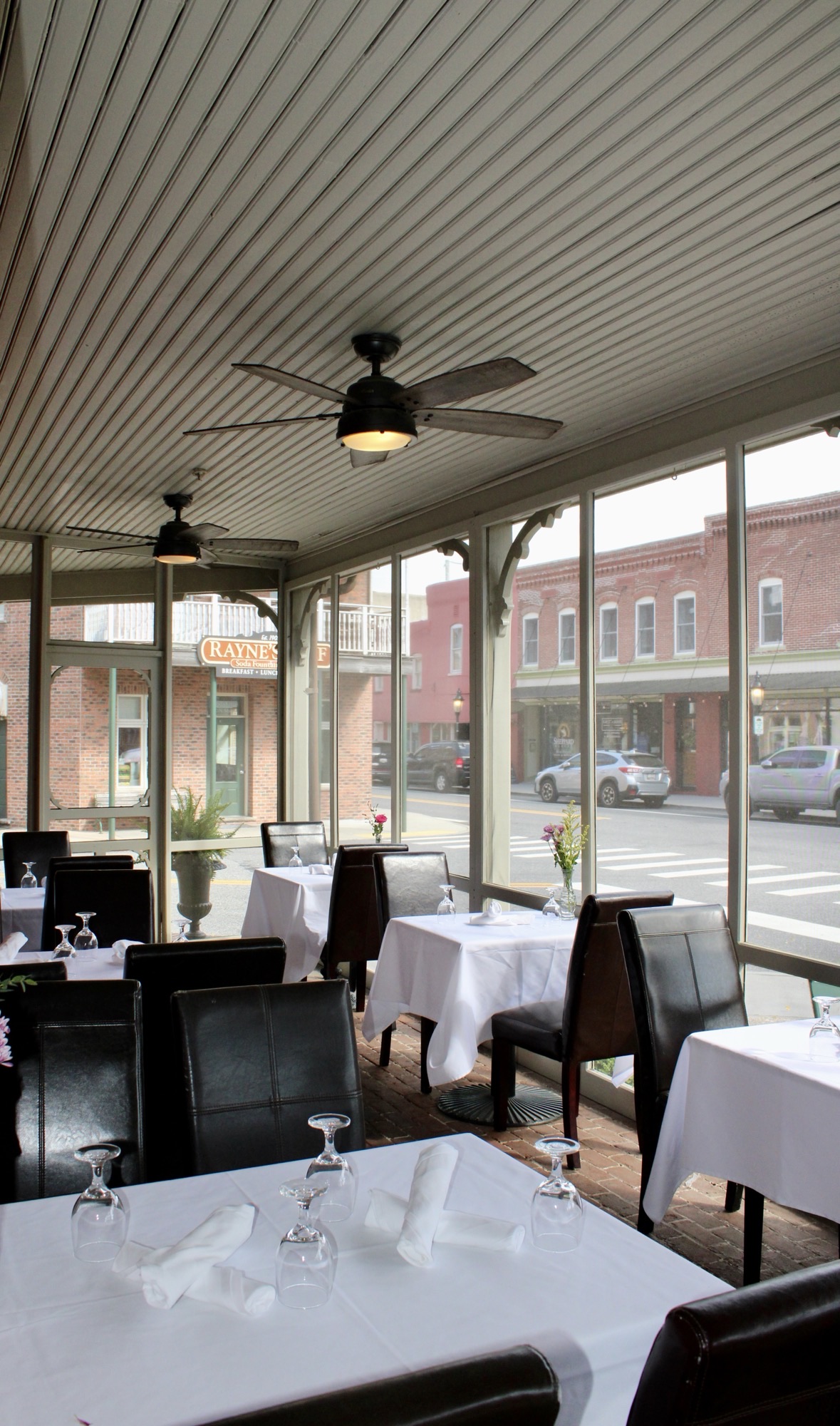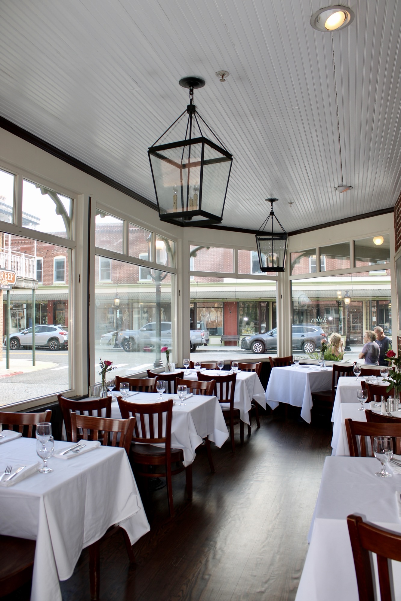 An enclosed porch allows diners to enjoy the view of Berlin’s Historic District all year long. In season the screened porch is a favorite spot to take in the charm of this small town, especially those warm summer nights when there is entertainment on the front porch.
